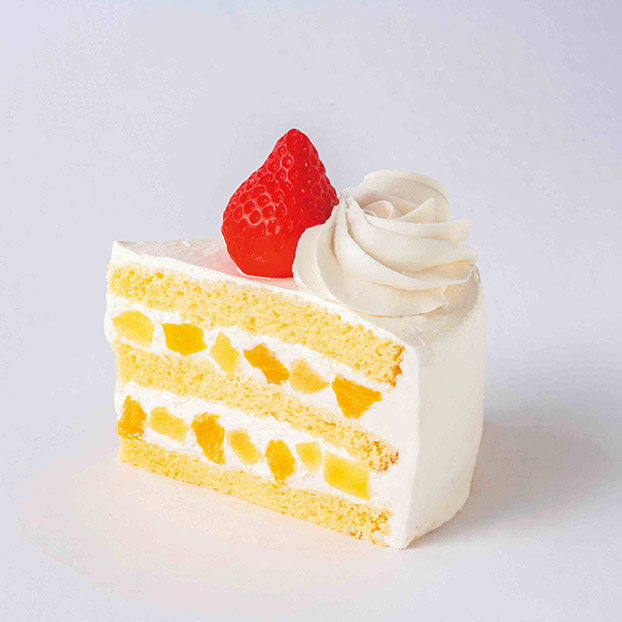 スポンジケーキにピーチとアップルをサンドし特製クリームで仕上げました。