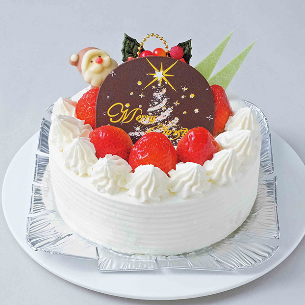 苺2段サンドで、生クリームはシャルロッテオリジナルでスポンジとの相性抜群。サンタ人形はチョコレートで出来ています。