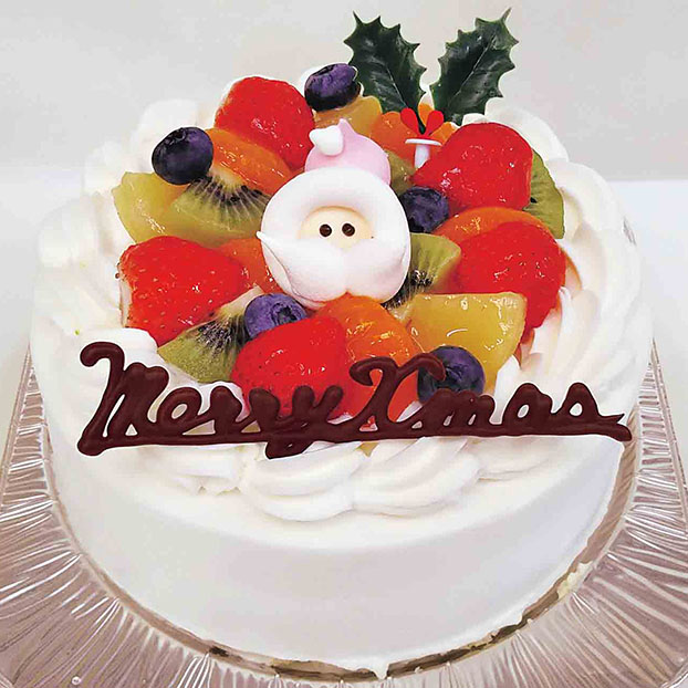 人気のフルーツたっぷりクリスマスケーキ。サンドは苺と洋梨です。