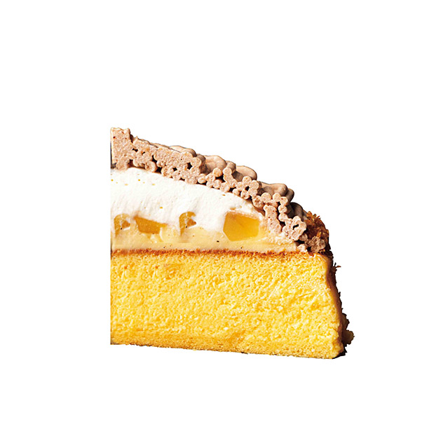 西洋菓子倶楽部で人気のしっとりと焼き上げたチーズケーキにカスタードクリームと生クリーム、国産の栗をちりばめたっぷりのマロンクリームで仕上げました。