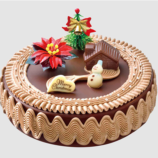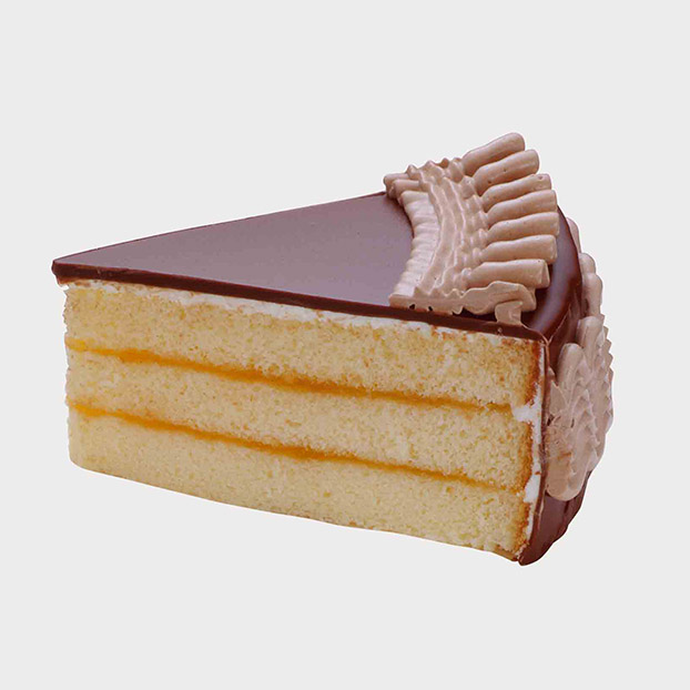 スポンジであんずジャムを2層サンドし、チョココーティング、コーヒー風味クリームを絞った常温ケーキです。(コーヒーフレーバー使用)