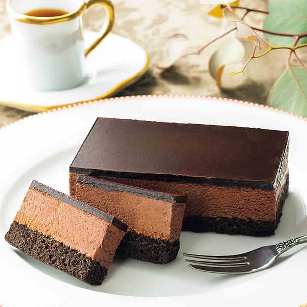 今まで25%の配合量であったベルギーチョコレートの割合を62.5%に大幅増量。今まで以上に濃厚で、まるで生チョコを食べているかのようなチョコレートケーキに仕立てました。
