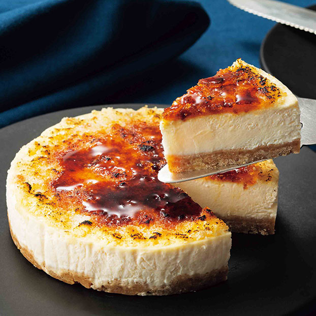 北海道産クリームチーズを100%使用した濃厚なベイクドチーズケーキの表面をバーナーで炙りブリュレ仕立てに。カリカリ、ねっとり、サクサクといった3種類の食感が楽しめるチーズケーキです。
