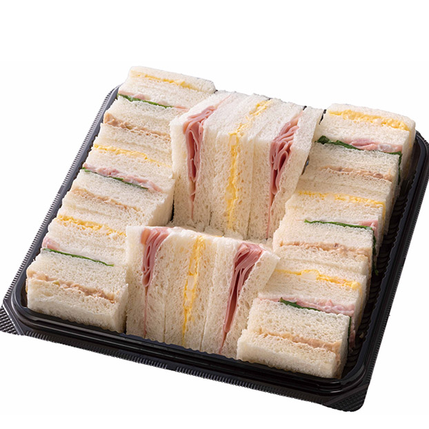 一口カットと山型カットのサンドイッチを彩りよく組み合わせたサンドイッチの詰合せです。
