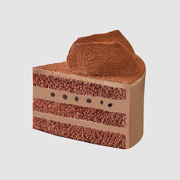 チョコチップとチョコクリームをサンドし、チョコをトッピングしたチョコづくしのクリスマスケーキです。