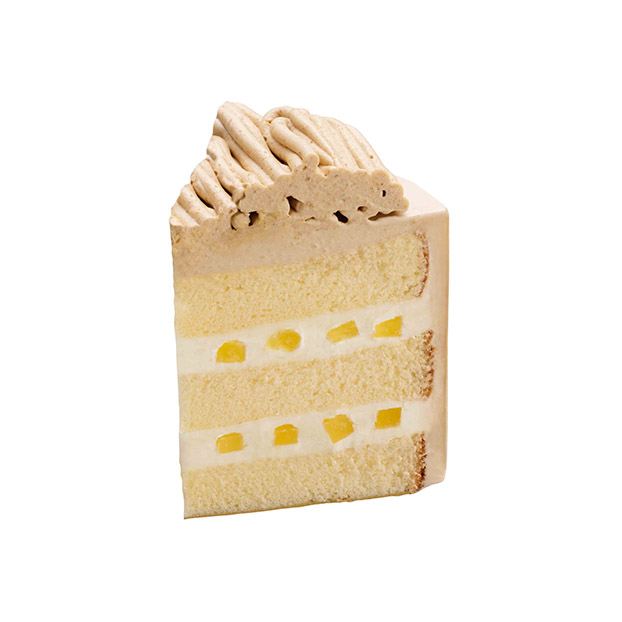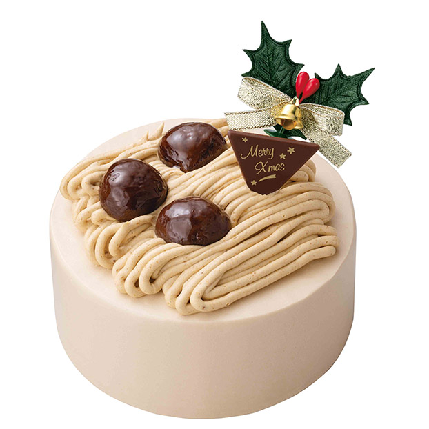糖漬マロンダイスとカスタードホイップクリームを2層サンドし、マロンクリームをデコレーション。渋皮付きの糖漬マロンをトッピングしました。