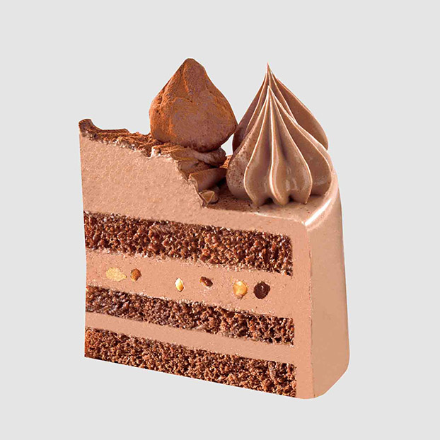 さっぱりとしたチョコクリームとアーモンドを ココアスポンジでサンドした糖質を抑えたケーキです。上部にはトリュフチョコとココアパウダーをトッピングしました。※「日本食品標準成分表2020年版のショートケーキ(果実なし)との比較(100g当たり)で糖質57%オフ(エリスリトールを除いた糖質の比較では67%オフ)