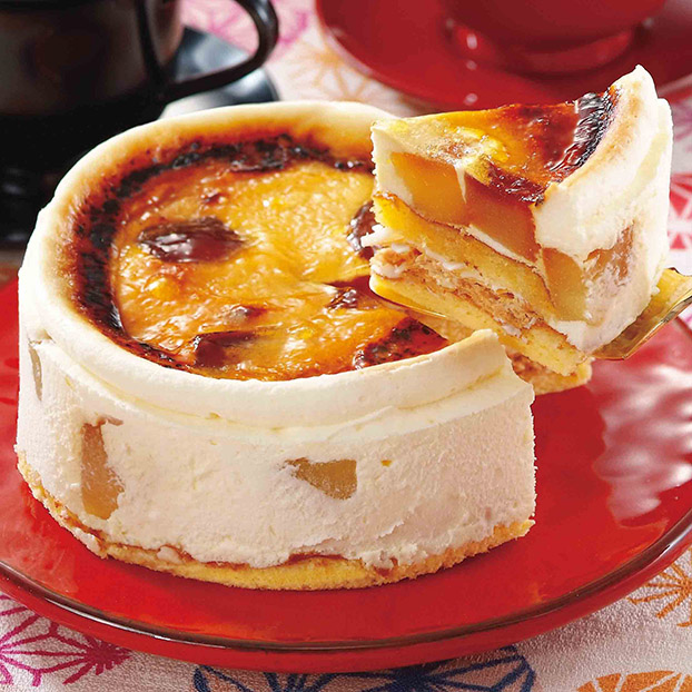 サクサク食感のパイ生地をはさんだスポンジに、国産はちみつを絡ませたりんごとカスタードクリームを重ね、表面をキャラメリゼしました。
