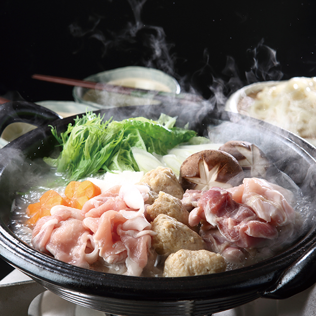 鶏ガラから炊き出した名古屋コーチンスープと豚肉、鶏肉の旨味が絡みあうちゃんこ鍋セットです。
