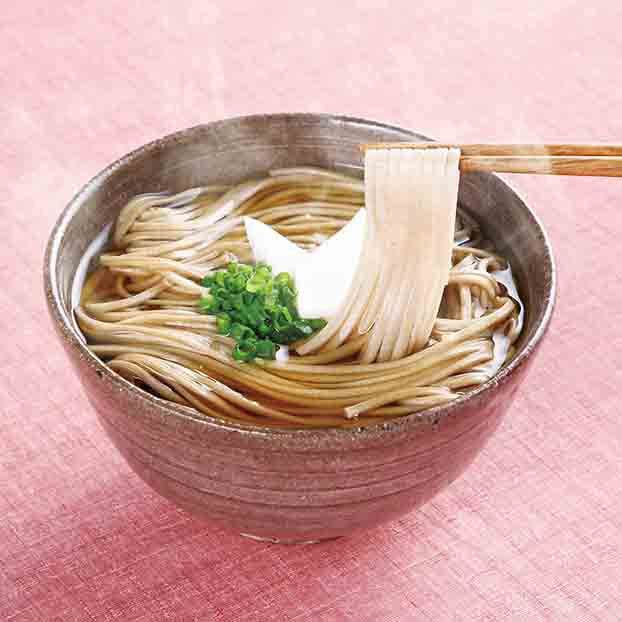 越前そばの里ファーム直営農場で丹精込めて育て上げたそばの実を自家製粉し、挽きたての風味豊かな深い味わいのなまそばに仕上げました。