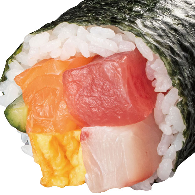 アルビスこだわりのネタをまるっと巻き込んだ海鮮太巻きです。