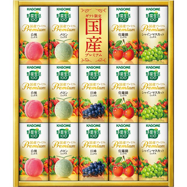 野菜生活100国産プレミアム(白桃ミックス・メロンミックス・佐藤錦ミックス・シャインマスカットミックス)各125ml×各3、野菜生活100国産プレミアム巨峰ミックス125ml×2